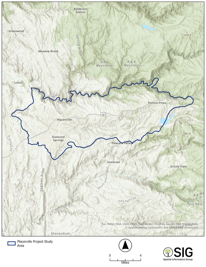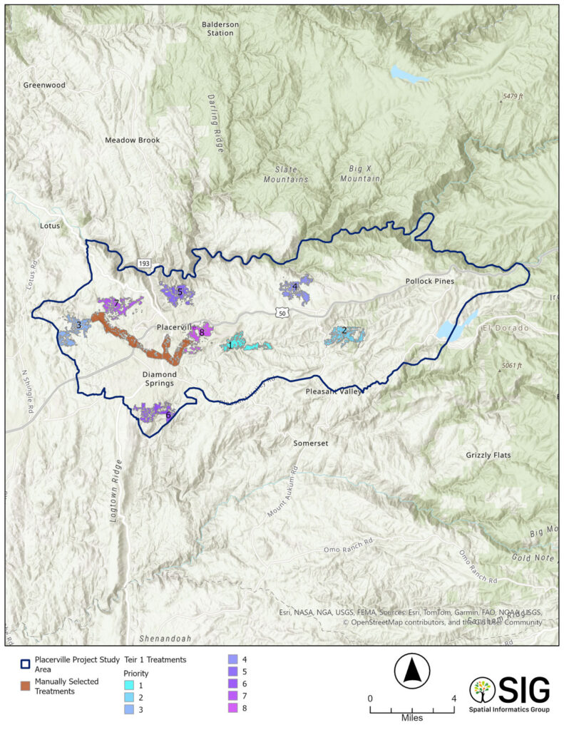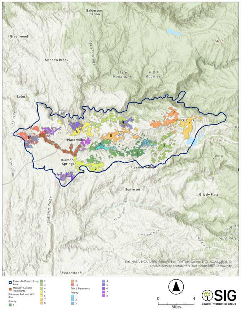 Figure 5: Final map of the Placerville Project Study Treatments from the Placerville Wildfire Resilience Strategy website.
